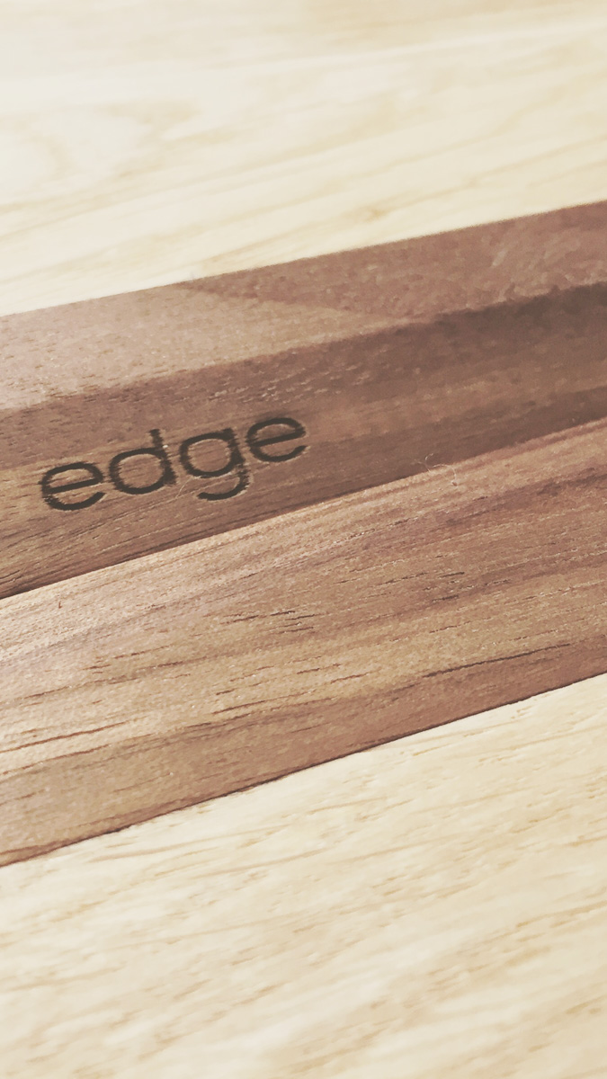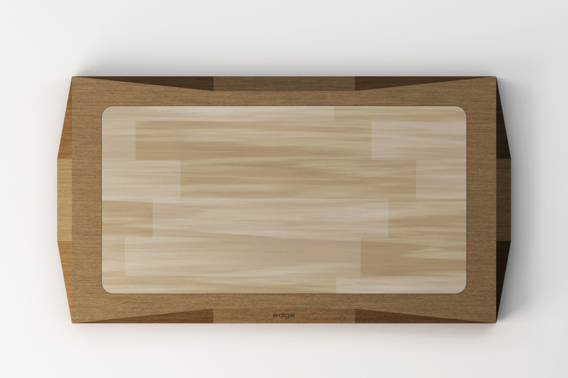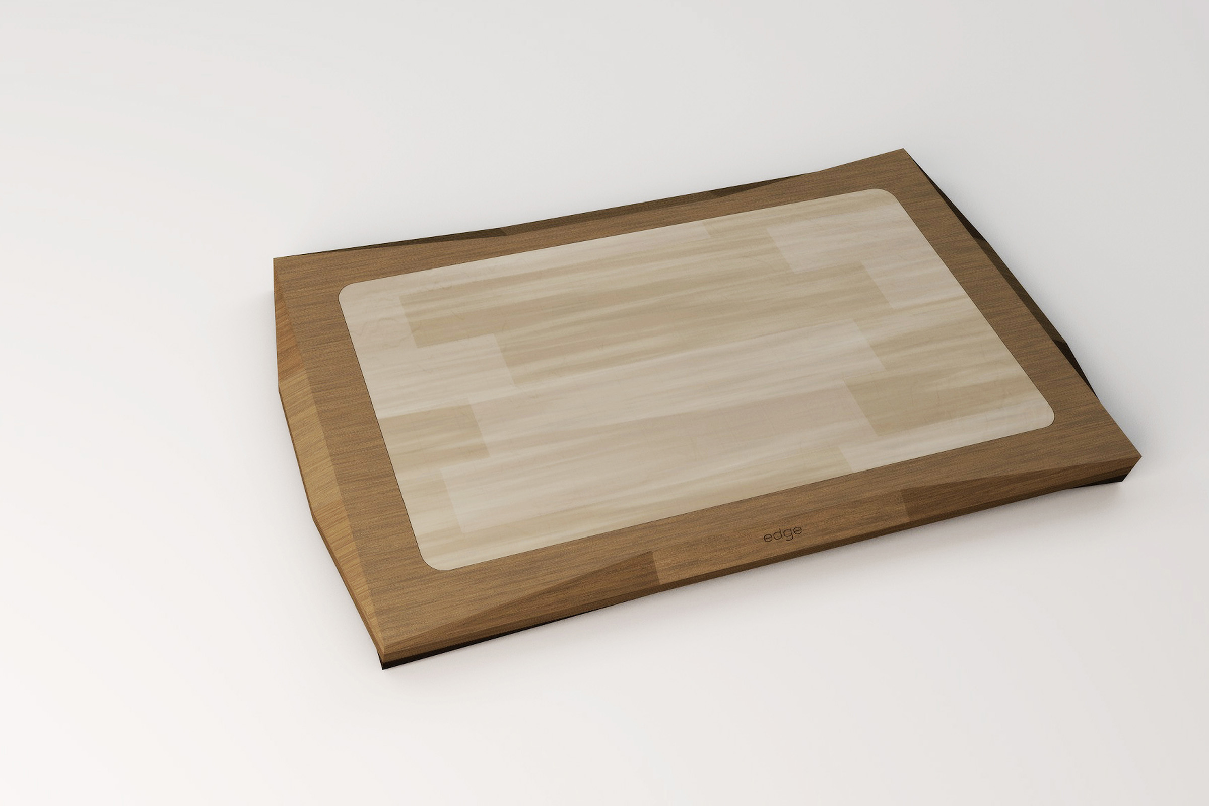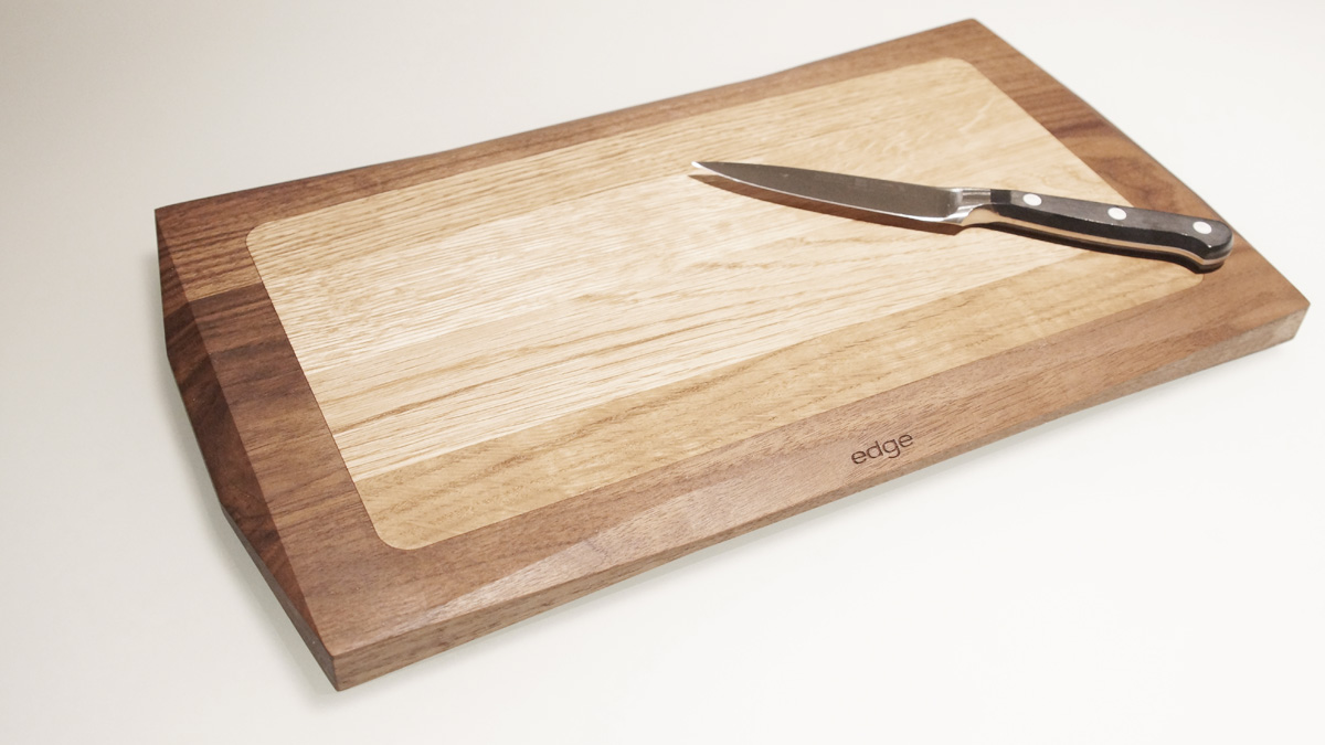 «edge» ist ein Design-Schneidebrett aus Hartholz (europäische Eiche und Nussbaum) mit polygonalem Kantenbild.