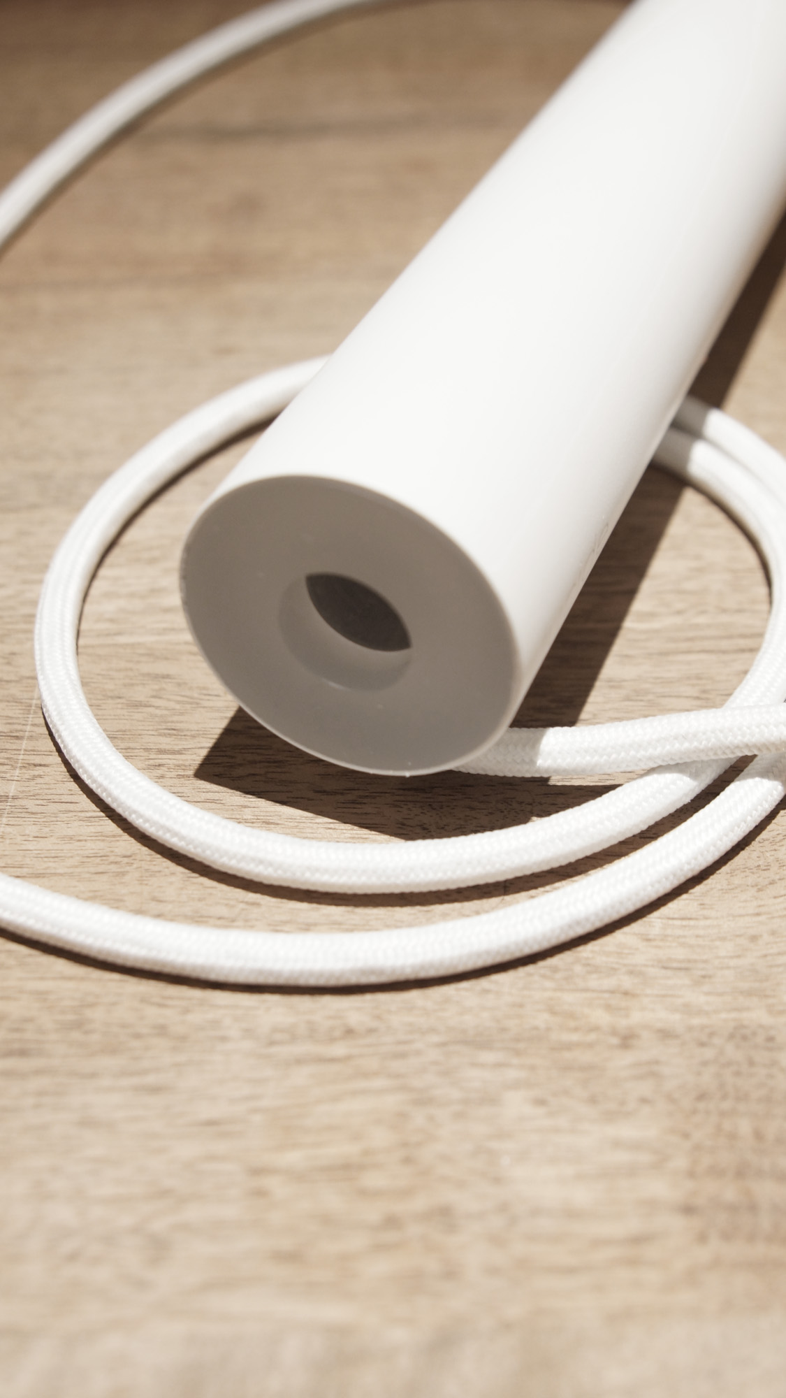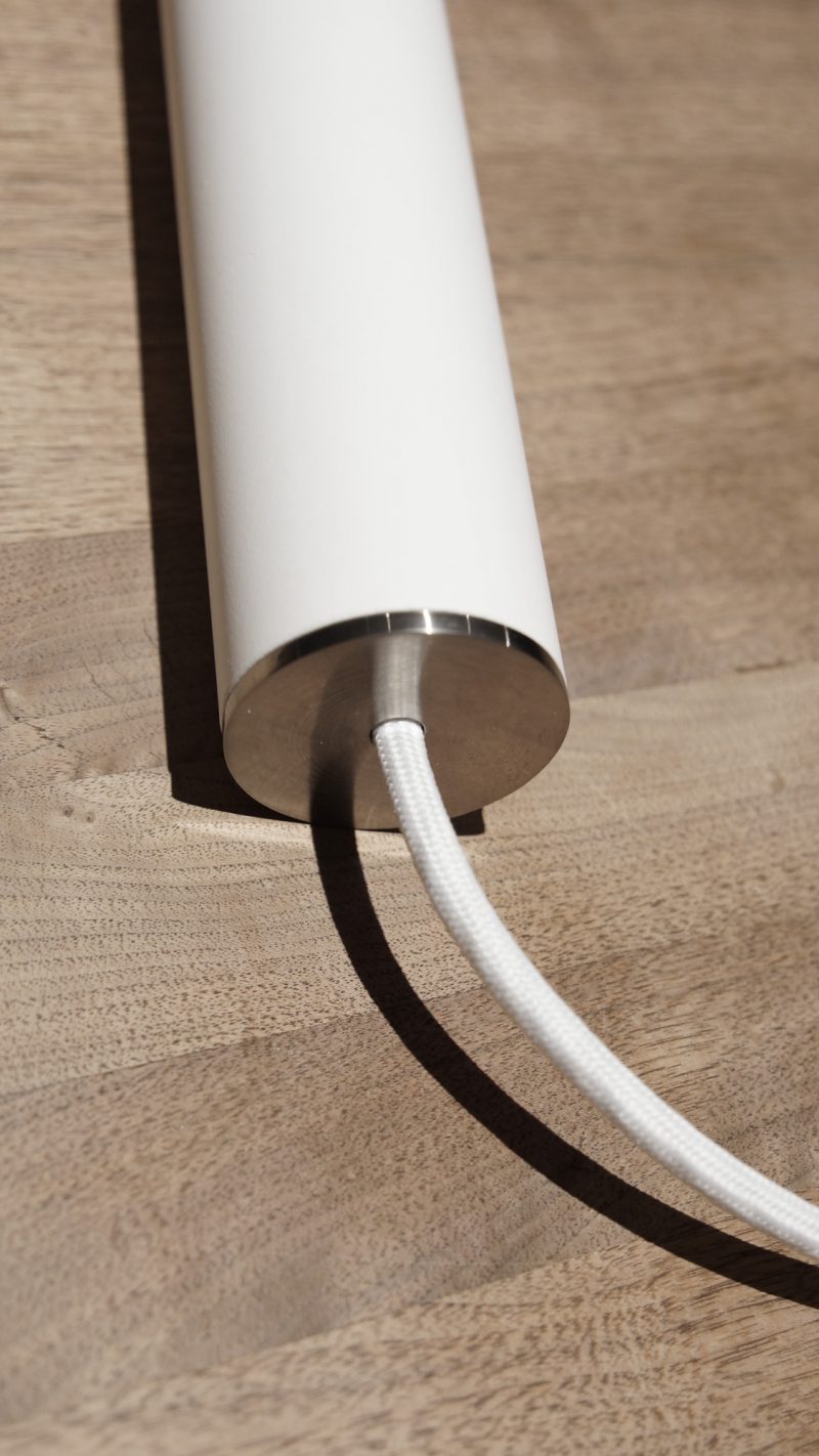 Die schlanke Pendelleuchte «lucide» ist aus hochwertigem, tiefmatt weiss pulverbeschichtetem Chromstahl gefertigt und in den zwei Längen 250 und 500mm erhältlich. Durch das schlichte, rohrförmige Design lassen sich mehrere Exemplare individuell kombinieren. Die Hochleistungs-LED-Platine ist verdeckt eingebaut. Das warme Licht wird durch einen satinierten, bündig eingelassenen Acrylzylinder transportiert und ist stufenlos dimmbar. Das weisse Textilkabel kann direkt an 220V Leitungen über eine massgefertigte Deckenschiene aus weiss mattem und satiniertem Acrylglas angeschlossen werden (passend zur Materialisierung der Lampe); somit ist bei der Installation kein Transformationsgerät nötig. Alle «lucide» Modelle werden in sorgfältiger Handarbeit in unserem Atélier in Zürich assembliert.