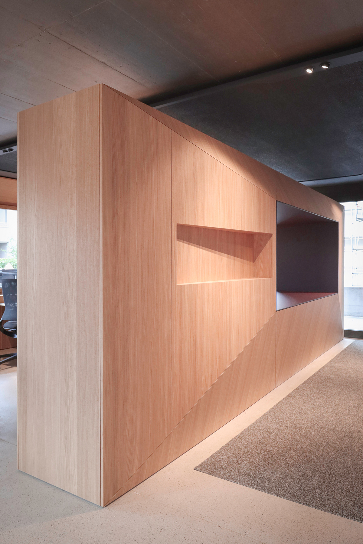 In einem Gewerbehaus in Fislisbach haben wir den Innenraum des neuen Standorts von BOSS Real Estate vollumfänglich gestaltet und das Projekt während der Umsetzung begleitet. Unser Anspruch war es, die Räumlichkeiten funktional zu gestalten und mit spannender Formsprache, wertigen Materialien, ansprechenden Farben, durchdachten Details sowie mit Einsatz von Licht- und Akustikelementen, eine angenehme Arbeitsumgebung zu schaffen.