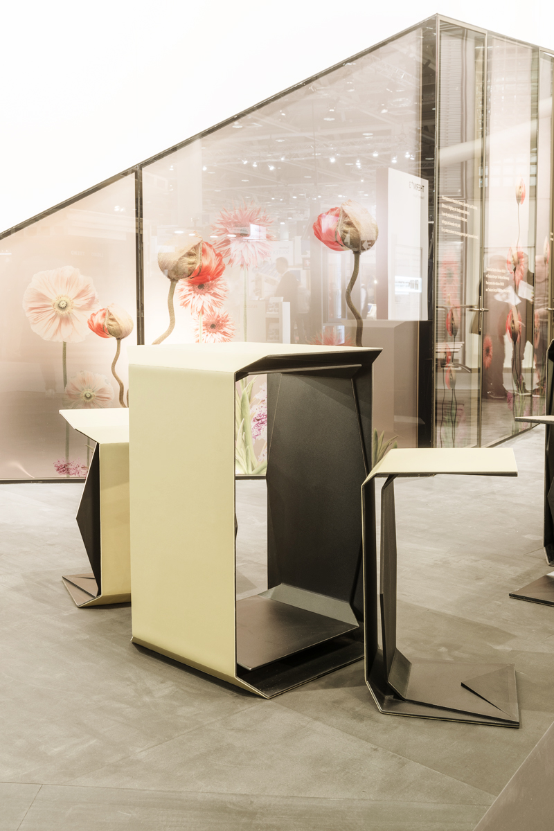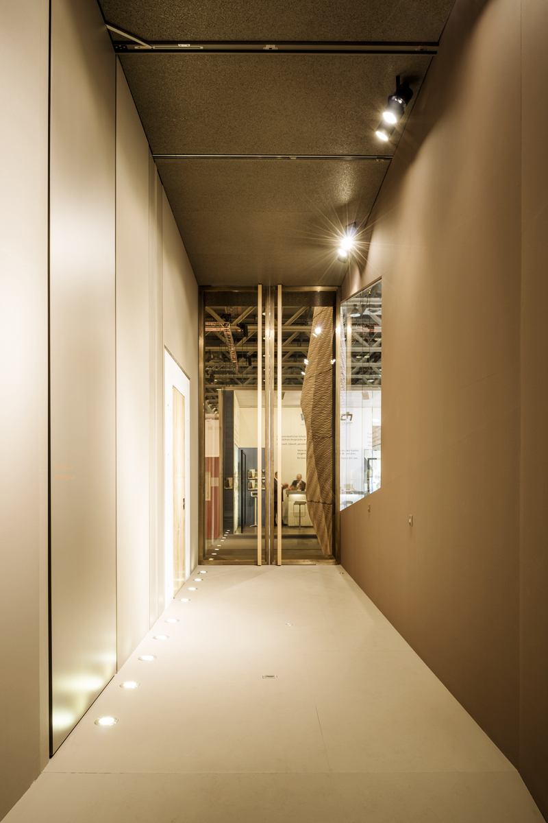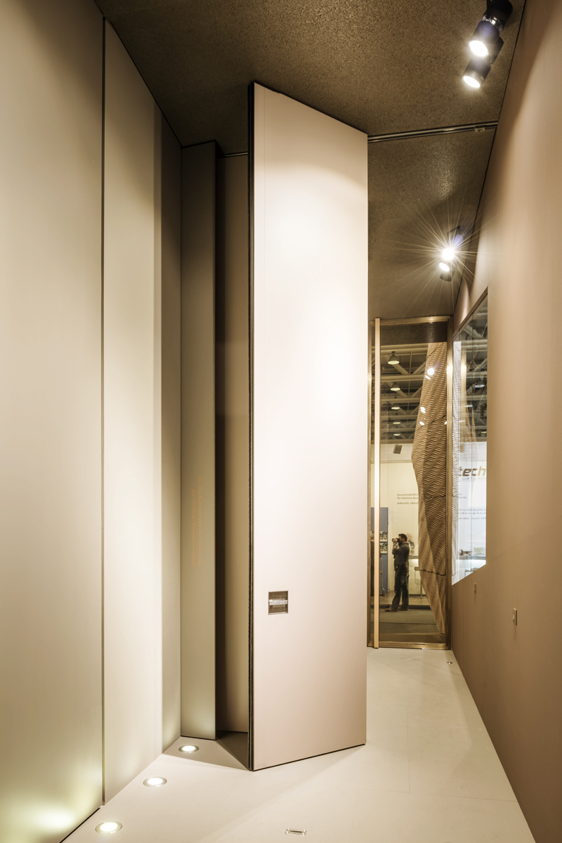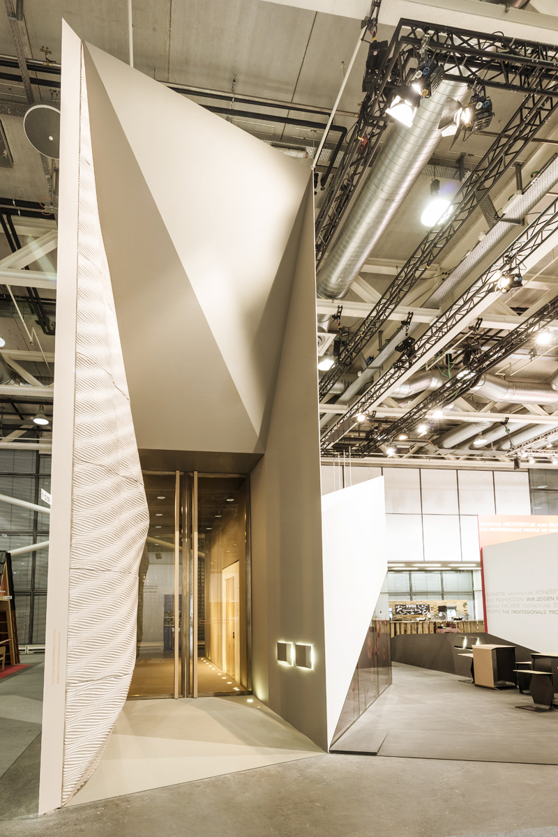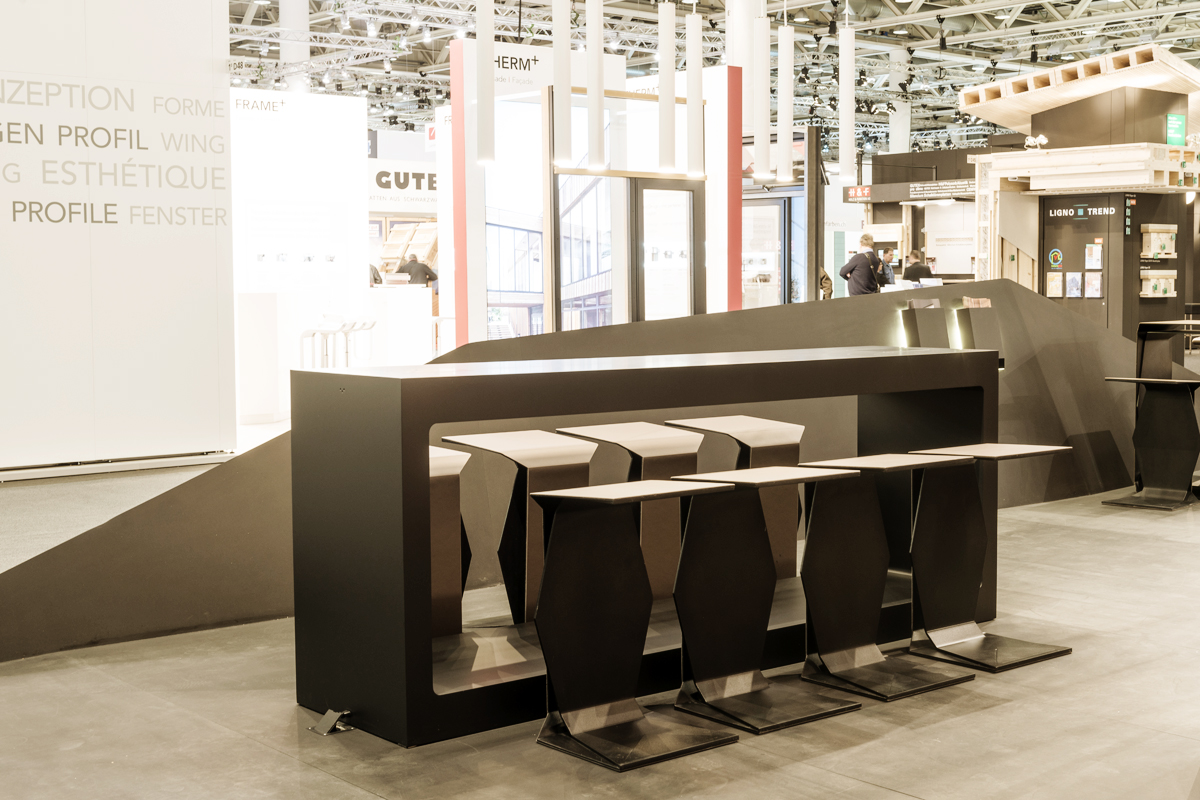 Auf einer Fläche von 108m2 und mit einer Höhe von bis zu 8m wurde an der Swissbau 2016 in Basel ein leuchtendes Bauwerk aus Holz und Glas erschaffen. Inspiriert durch Gesteinsstrukturen in der Natur erhob sich mit klaren Konturen und einer filigranen Kantenführung die kristalline Skulptur. Eine spannende Kulisse trat hervor und ein eindrückliches Raumerlebnis entstand, betont durch die kontinuierlich angestrebte Detailtreue von «crystal16». Die Skulptur bot den ästhetisch und funktional hochwertigen Produkten eine perfekte Bühne. In stilvollem Ambiente konnten Architekten und Kunden Neuentwicklungen demonstriert und den Dialog über Einsatzmöglichkeiten geführt werden.