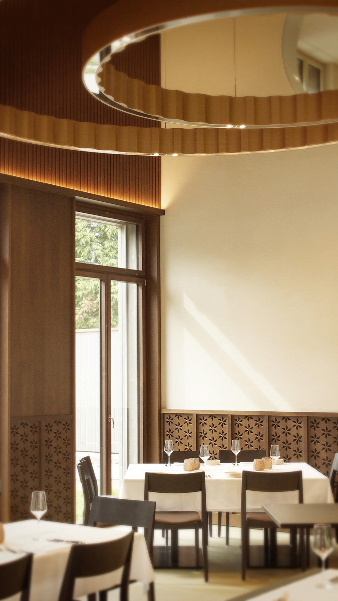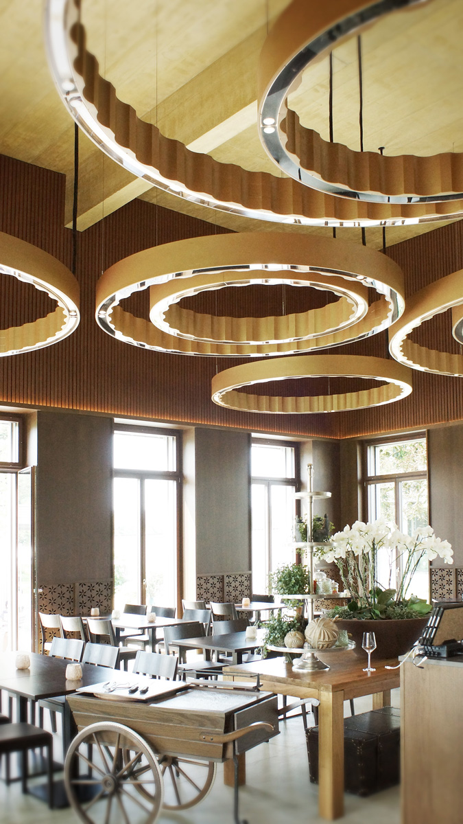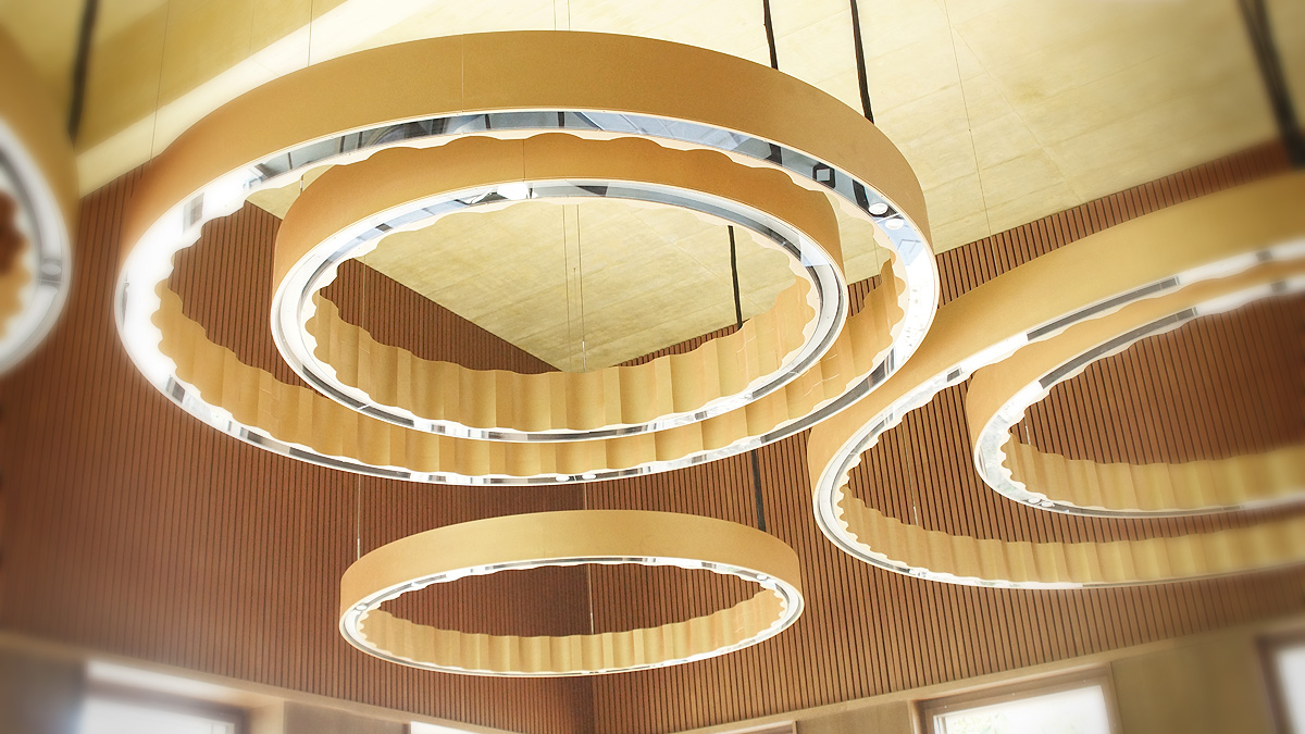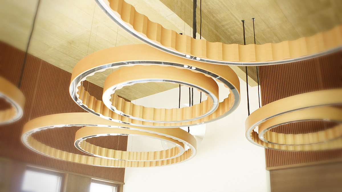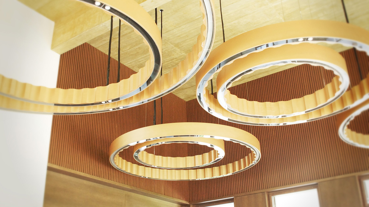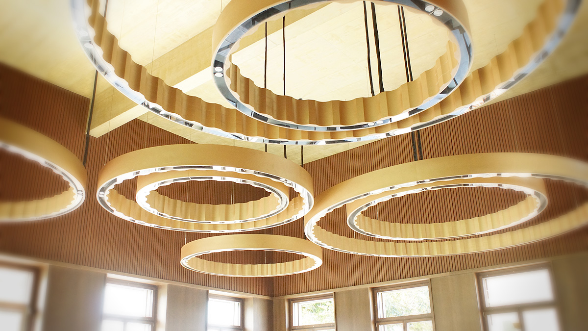 Für die ‚Fahrhalle‘ im neue Restaurant FAHR haben wir zusammen mit Fachplanern ein Lichtkonzept erarbeitet und für die Umsetzung Kreisleuchten mit Durchmessern bis zu vier Metern entwickelt. Mit spannendem Profildetail und leicht verspielter, harmonischer Formation unterstreichen sie die hochwertige Architektur des hohen Raumes und sorgen für eine flexible, optimale Ausleuchtung mit Punkt-, Flächen- und indirektem Licht.