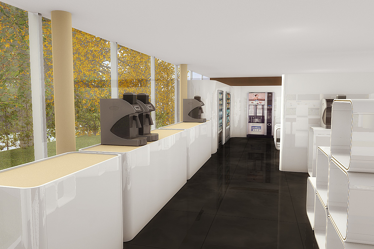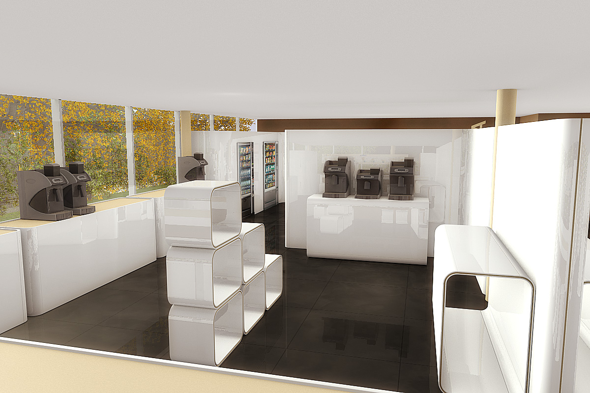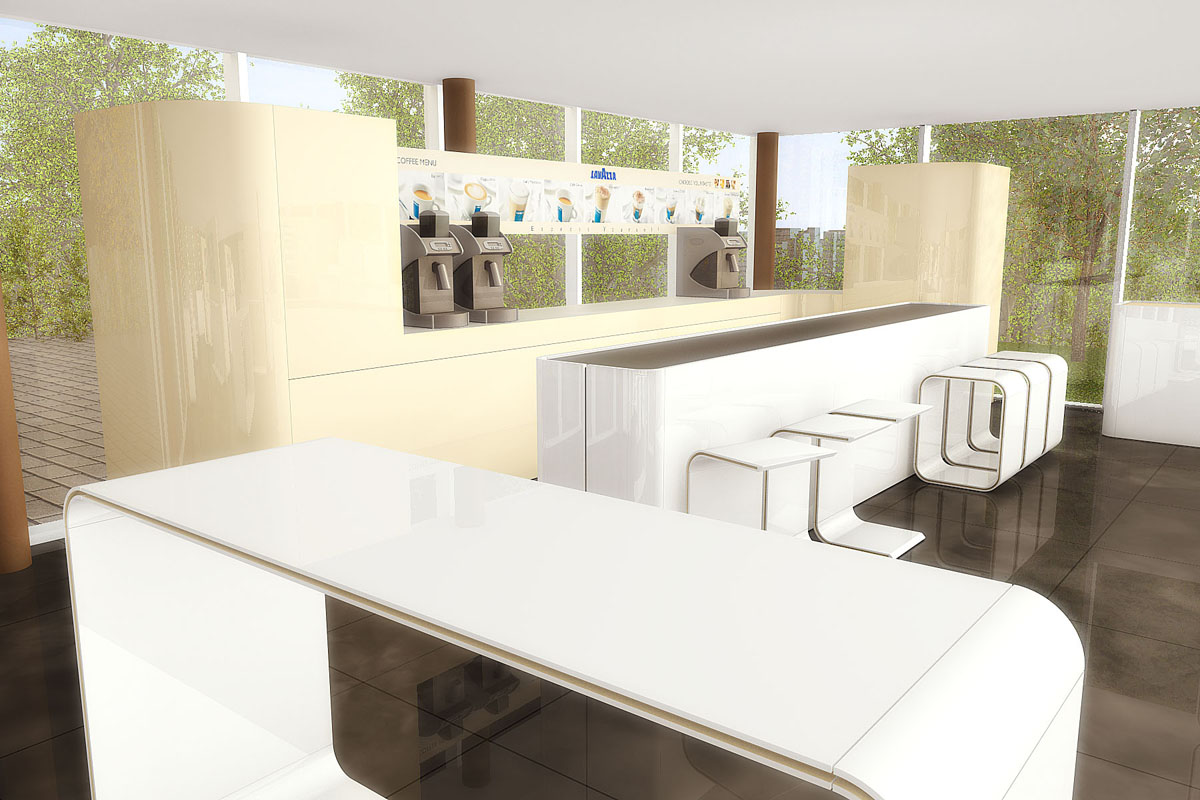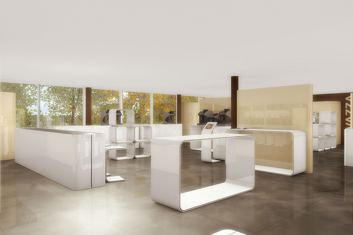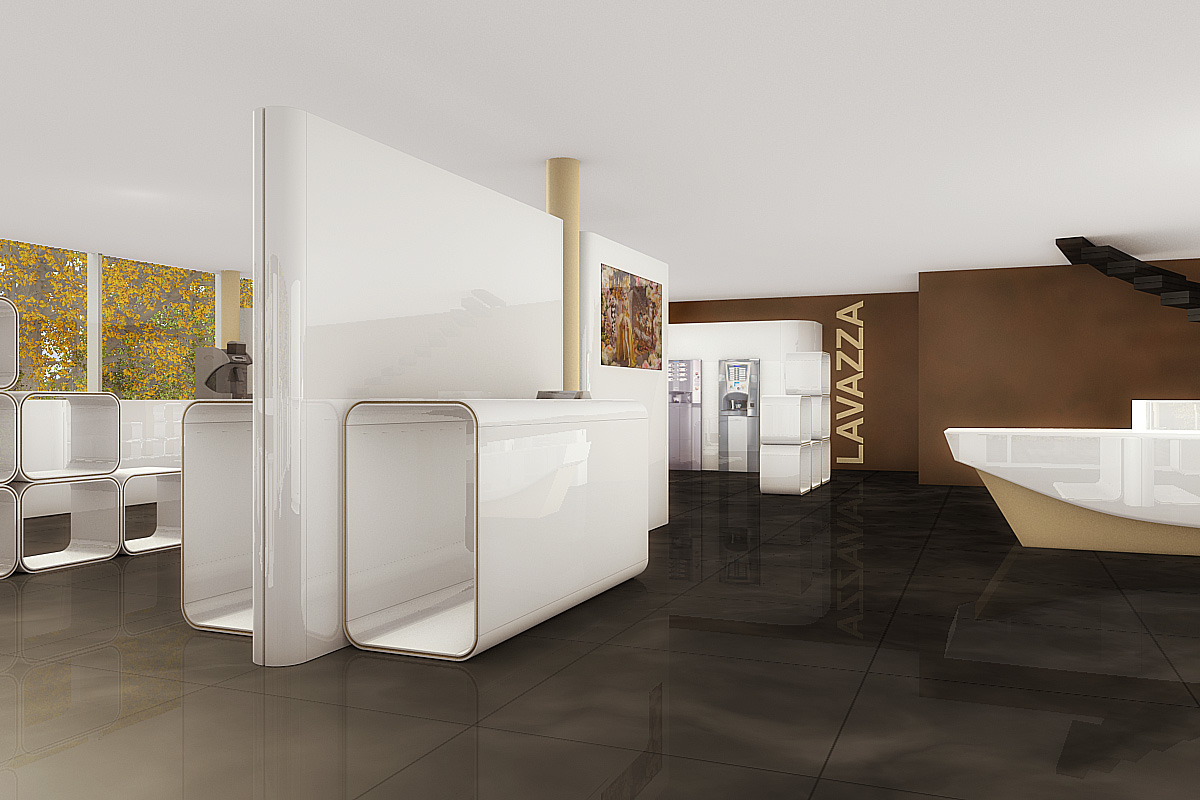 Für den italienischen Gastronomiekonzern entwarfen wir ein modernes Konzept zur Umgestaltung des Showrooms am Hauptsitz in Zürich. Eine vier Meter lange Bar mit komplettem Küchenbereich, doppelseitige Wandpanels, Automatenverkleidungen und skulpturale Ablagesysteme ergänzen die verschiedenen Sideboards welche Produkte und Zubehör in Szene setzen.