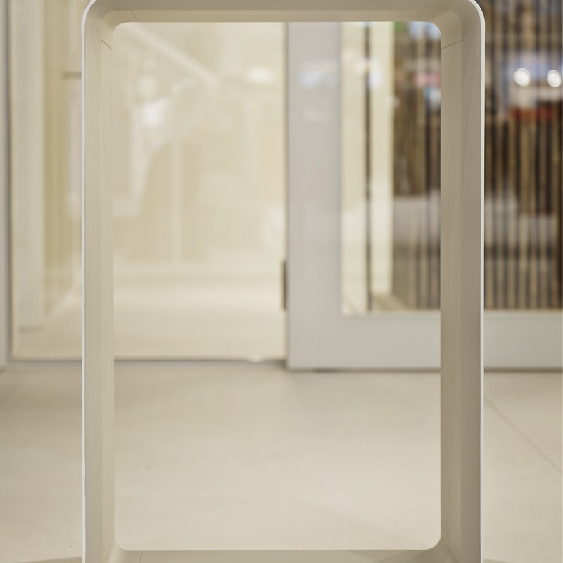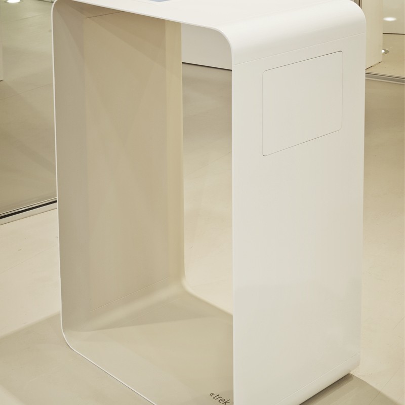 The furniture design-line «trek2» is based on a slim plywood construction and is available in three application areas (sit/stand/desk). A two colored special lacquering is ensuring a hard-wearing finishing and, in combination with the sloping inner edges, a slim and almost floating visual effect. «trek2» elements are custom built upon request.