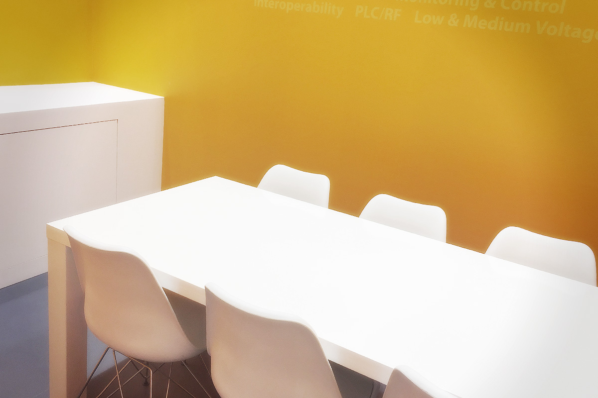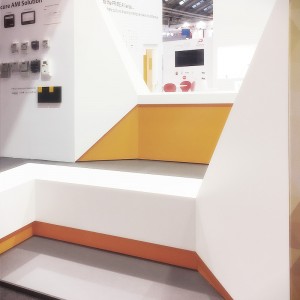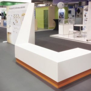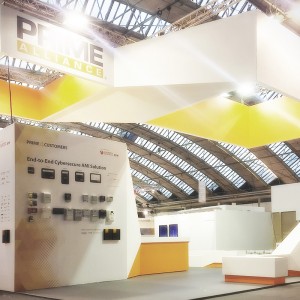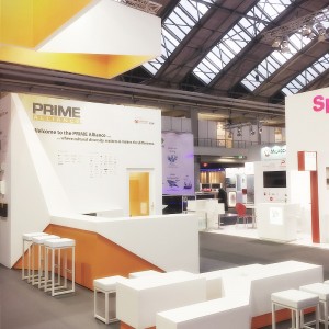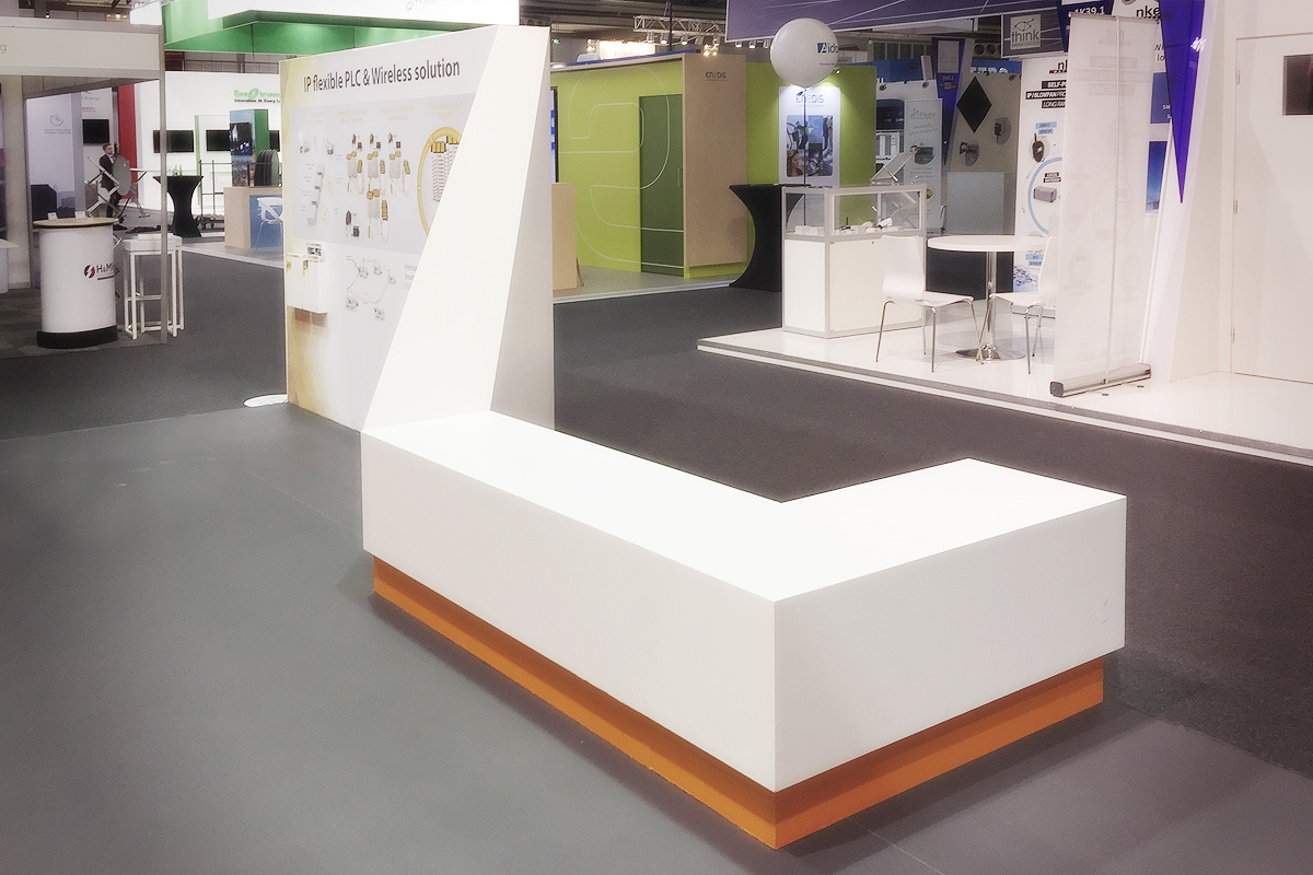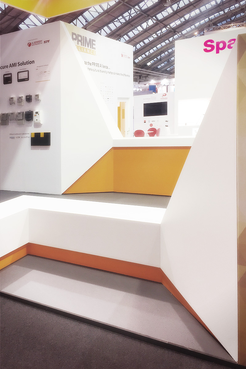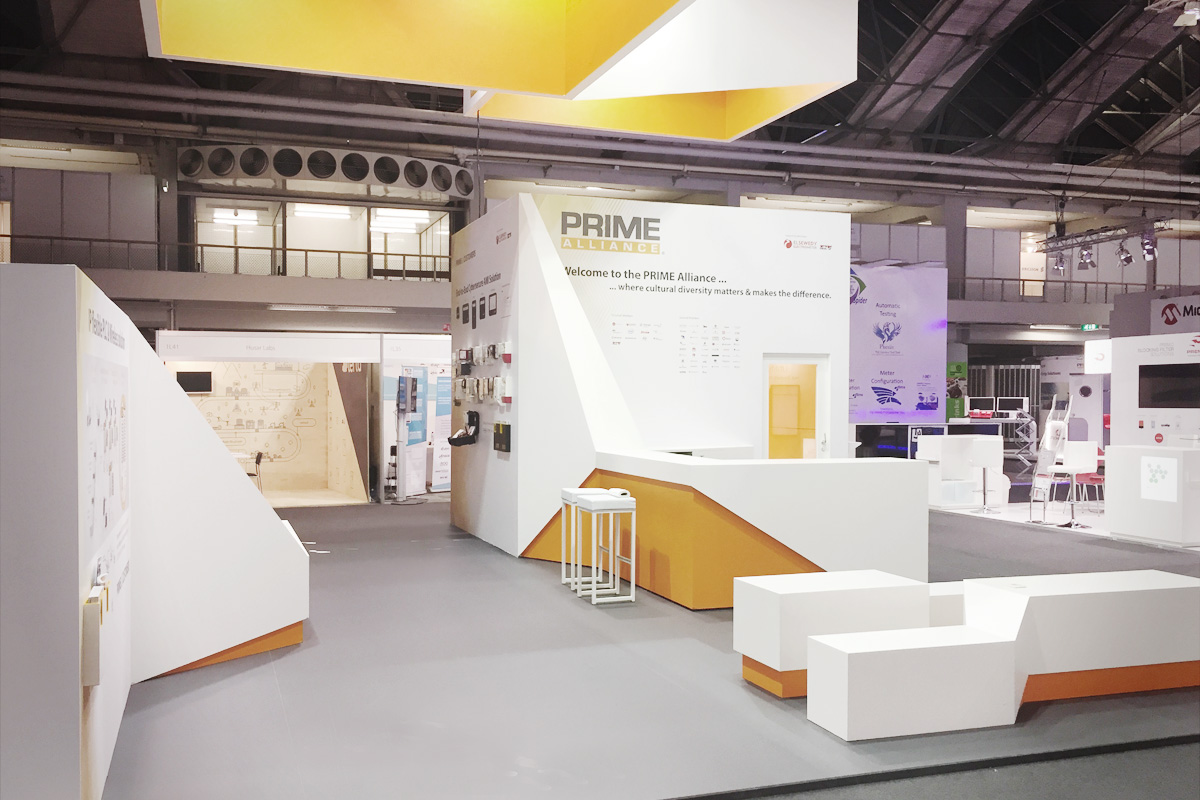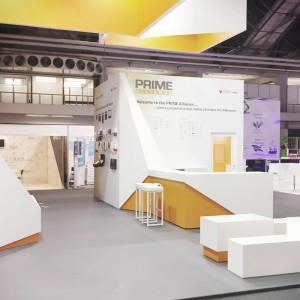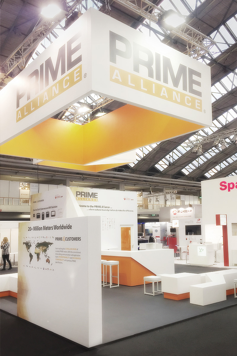 The banner structure conveys its extravagant formal language to the stand elements – the ensemble thus forms a harmonious insularity with exciting perspectives. The concept was developed and implemented for the PRIME Alliance at the European Utility Week in Amsterdam.